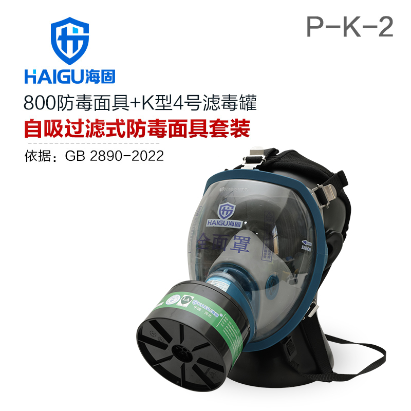 海固800全面罩+P-K-2濾毒罐 氨氣防毒面具套
