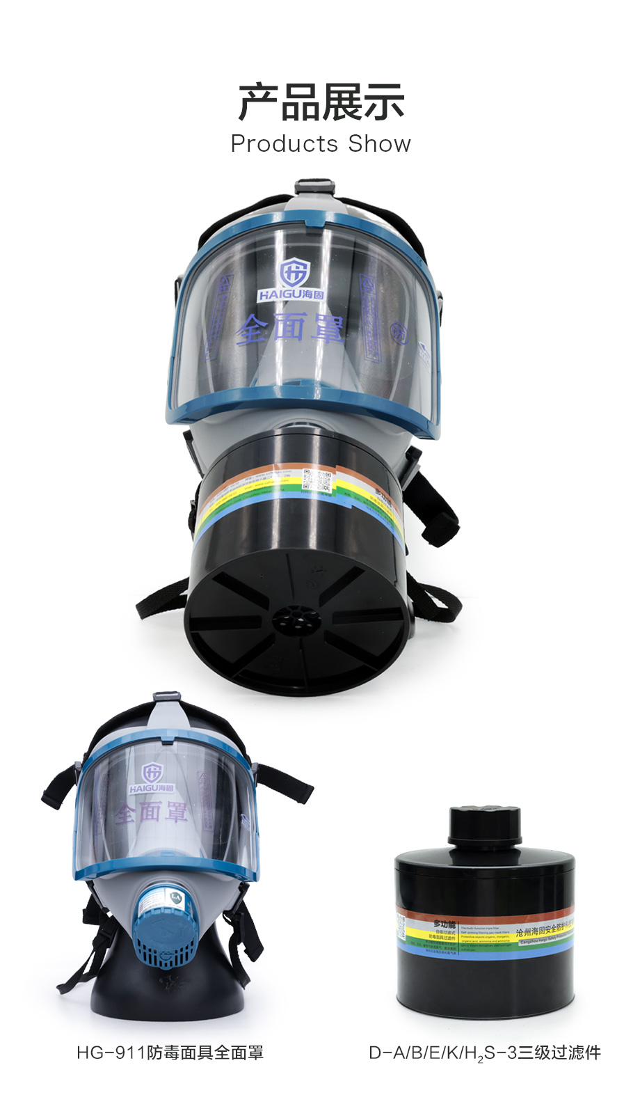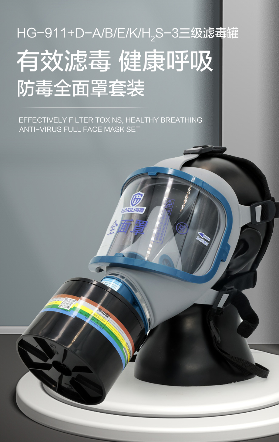 海固911全面罩+D-A/B/E/K/H2S-3濾毒罐 綜合防毒氣