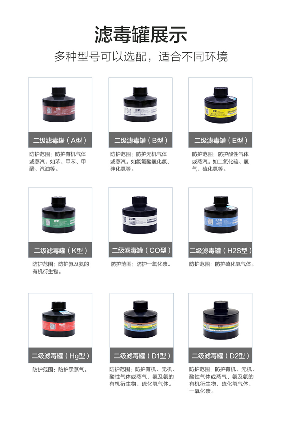 防護(hù)范圍:主要防護(hù)有機(jī)氣體與蒸汽