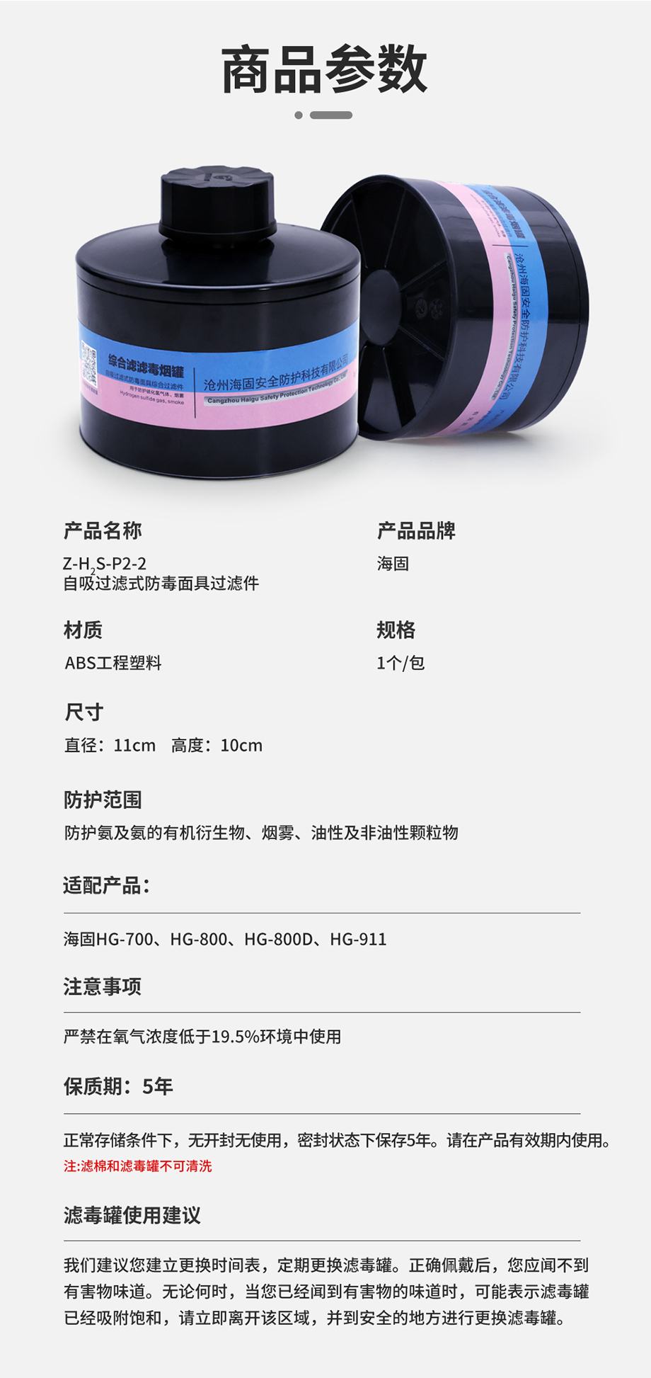 海固Z-H2S-P2-2/P3-2綜合濾毒濾煙罐 硫化氫及煙霧防護