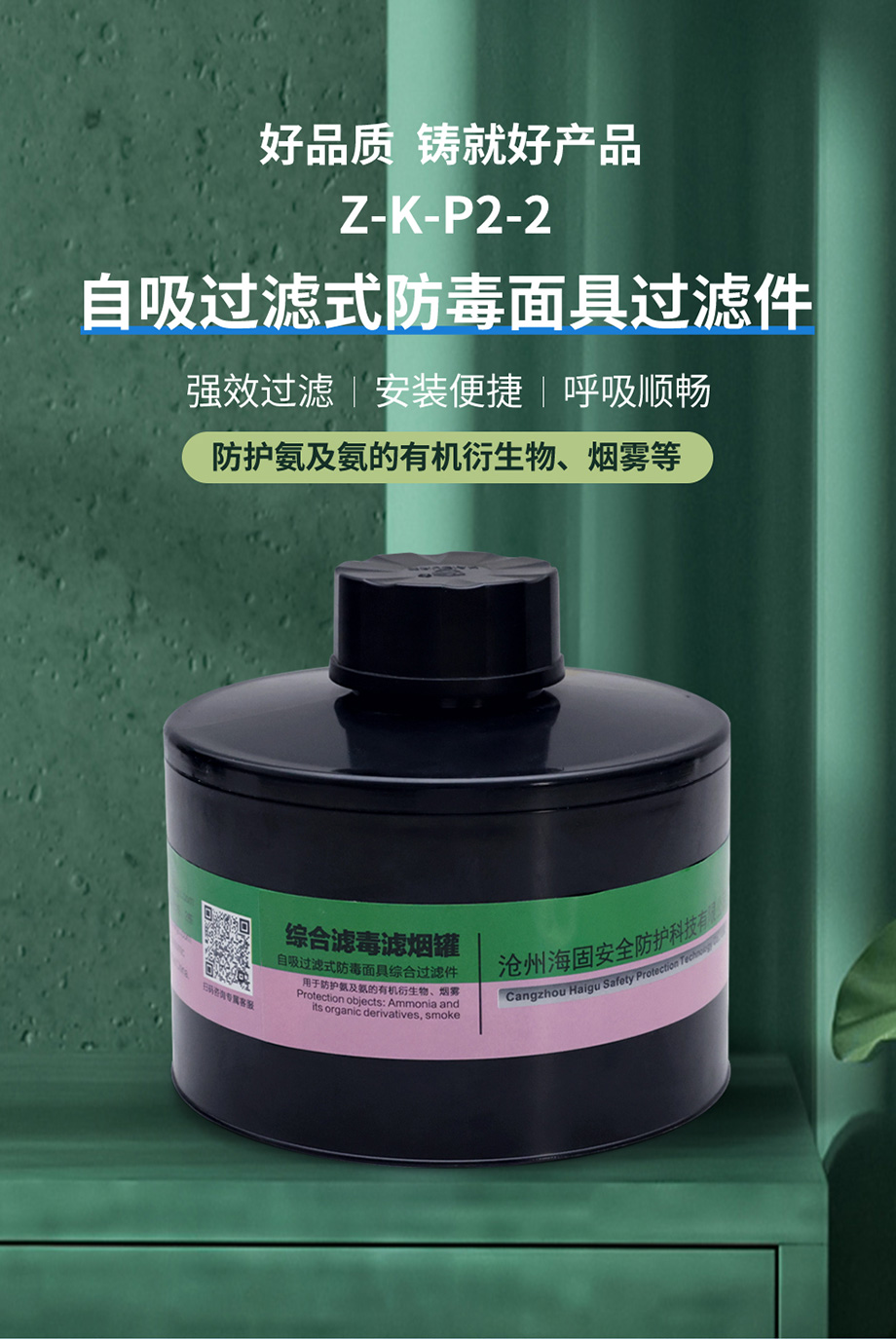 海固Z-K-P2-2/P3-2 綜合濾毒濾煙罐 防護(hù)氨及氨的有機(jī)衍生物、煙霧