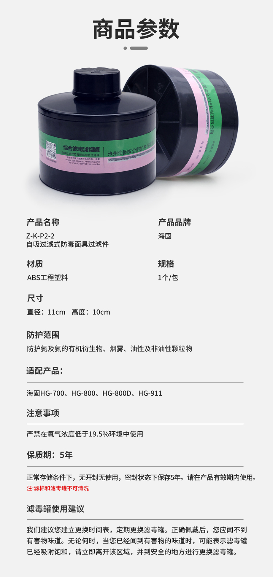產(chǎn)品規(guī)格:綜合濾毒濾煙罐