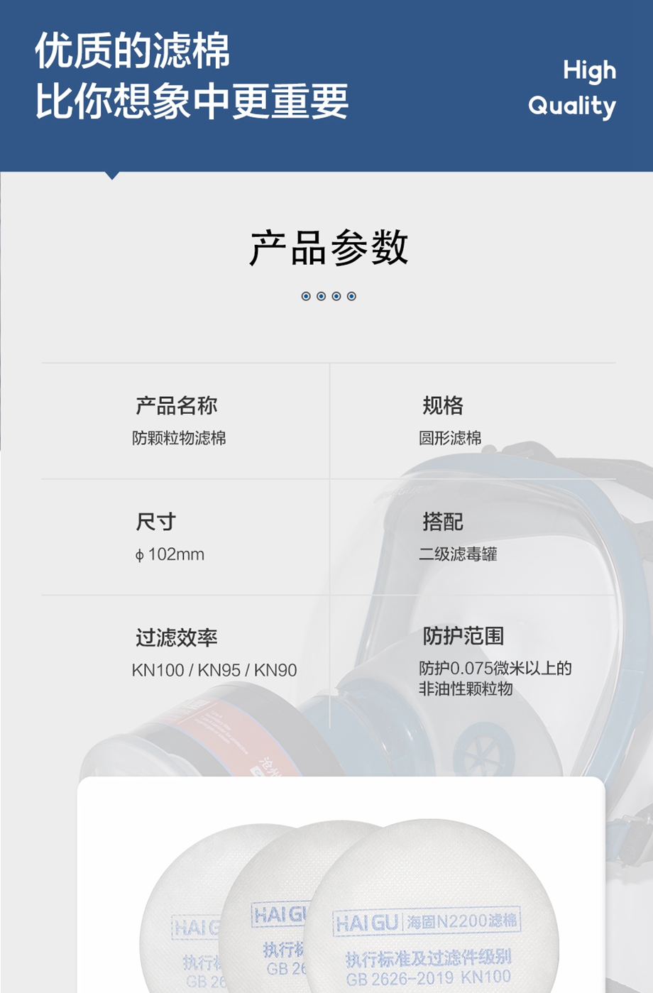 海固2系2級KN圓形濾棉 KN100/KN95/KN90非油性顆粒物濾棉