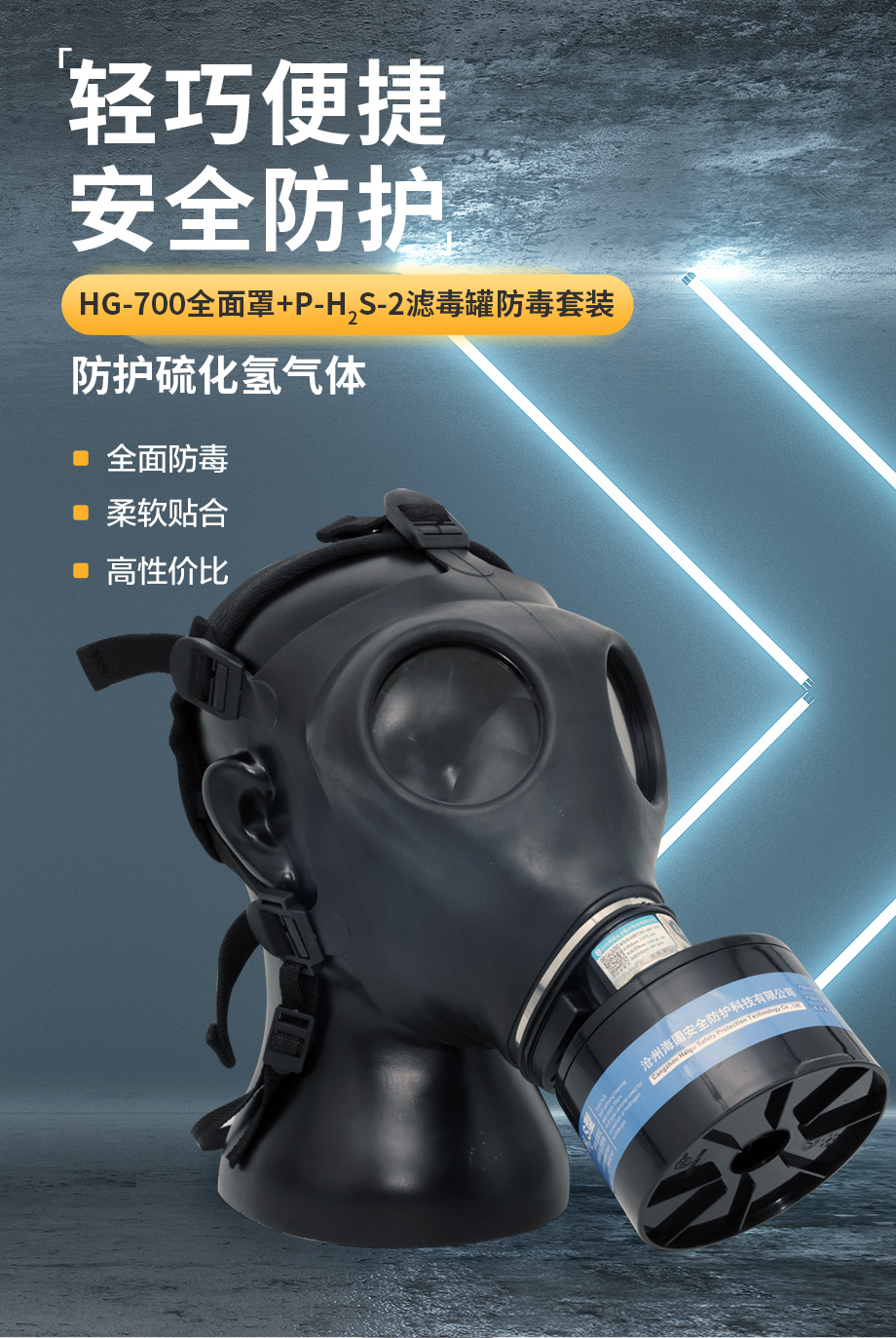 海固700全面罩+P-H2S-2濾毒罐 硫化氫防護(hù)套裝