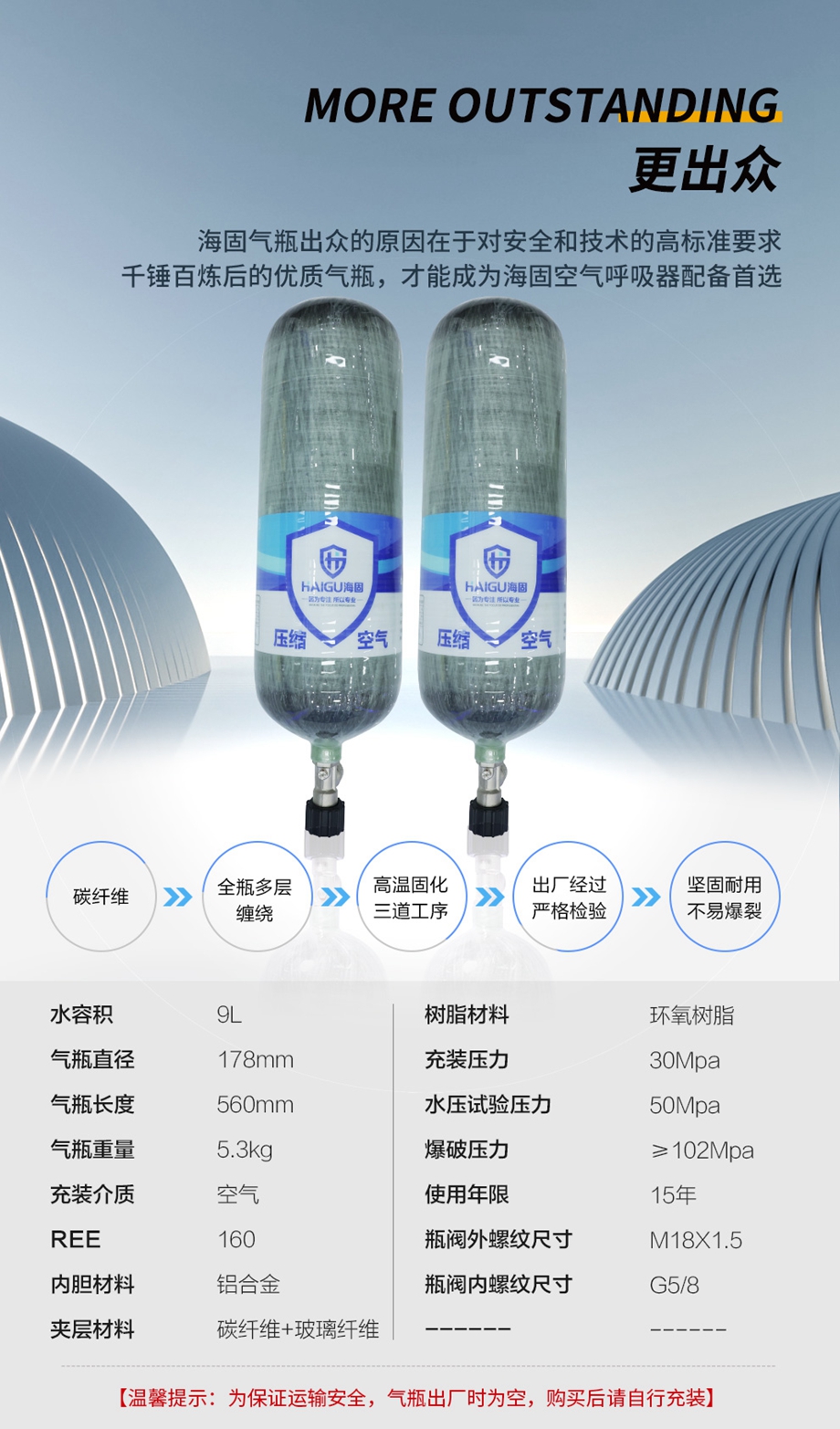 海固HG-RHZKF/9F正壓式空氣呼吸器碳纖維復(fù)合氣瓶