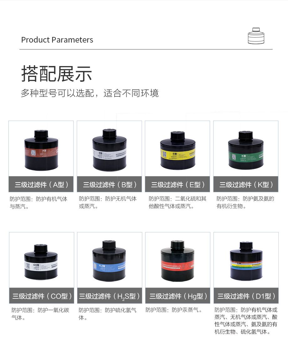 防護范圍:主要防護無機氣體或蒸汽,同時也可防護部分有機氣體