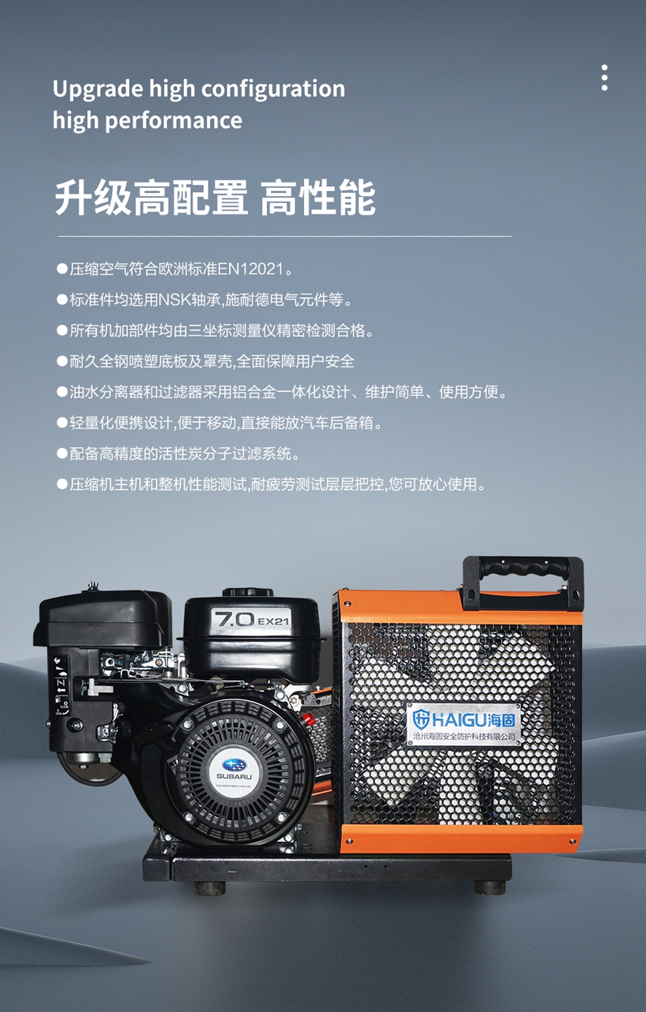 海固HG-CQ100C高壓呼吸空氣壓縮機(jī) 正壓式空氣呼吸器充氣泵