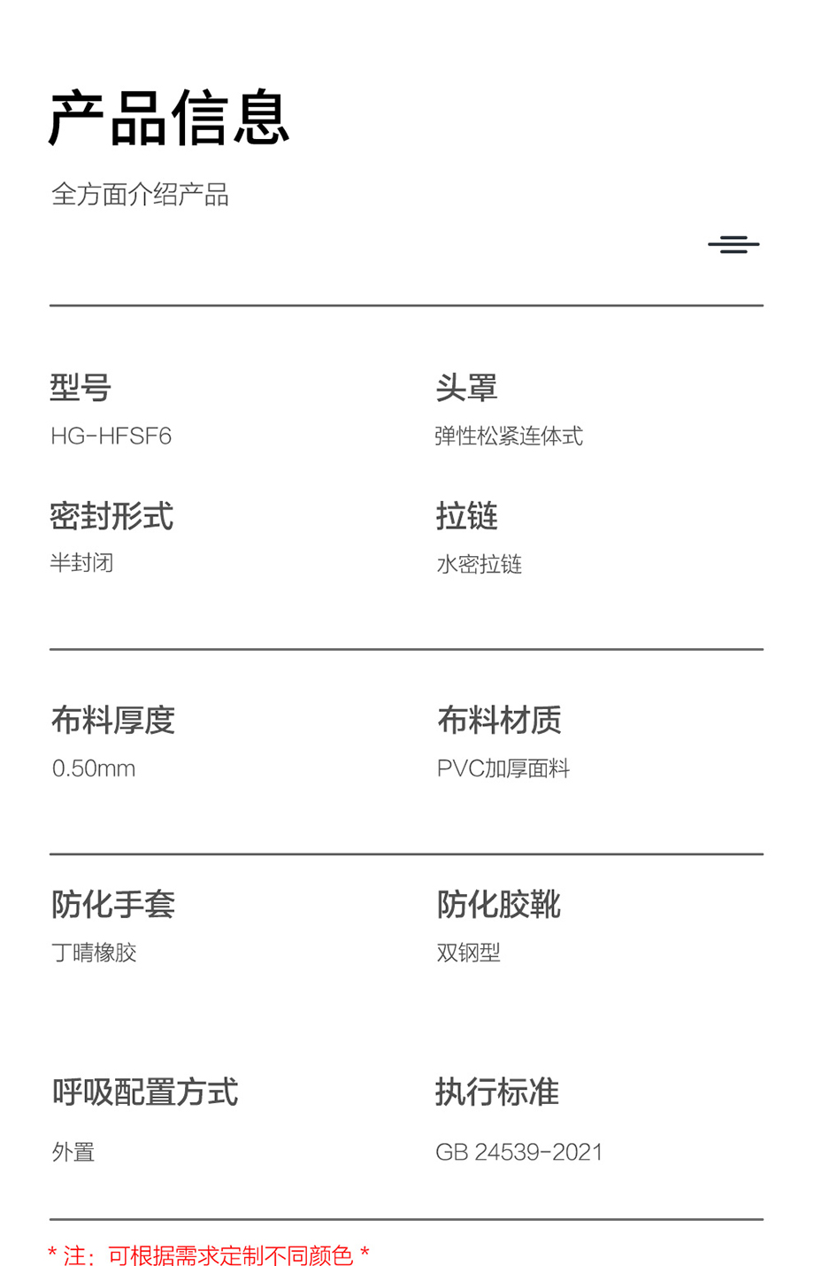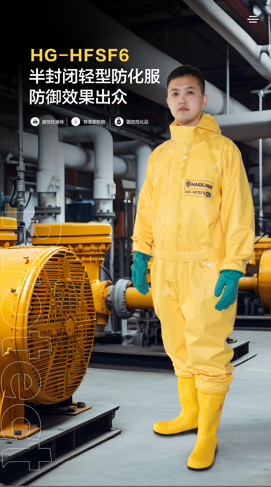 海固HG-HFSF6防護(hù)服 六氟化硫防護(hù) 半封閉輕型外置防化服