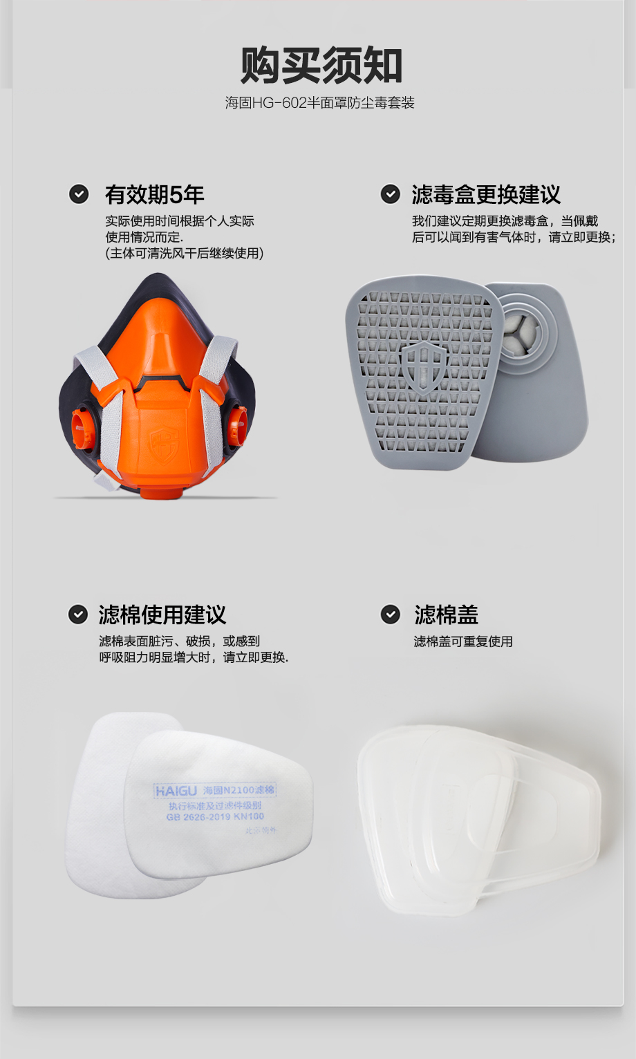 海固HG-602半面罩+P-Hg-1濾毒盒+濾棉+T形濾棉蓋 防塵毒套裝
