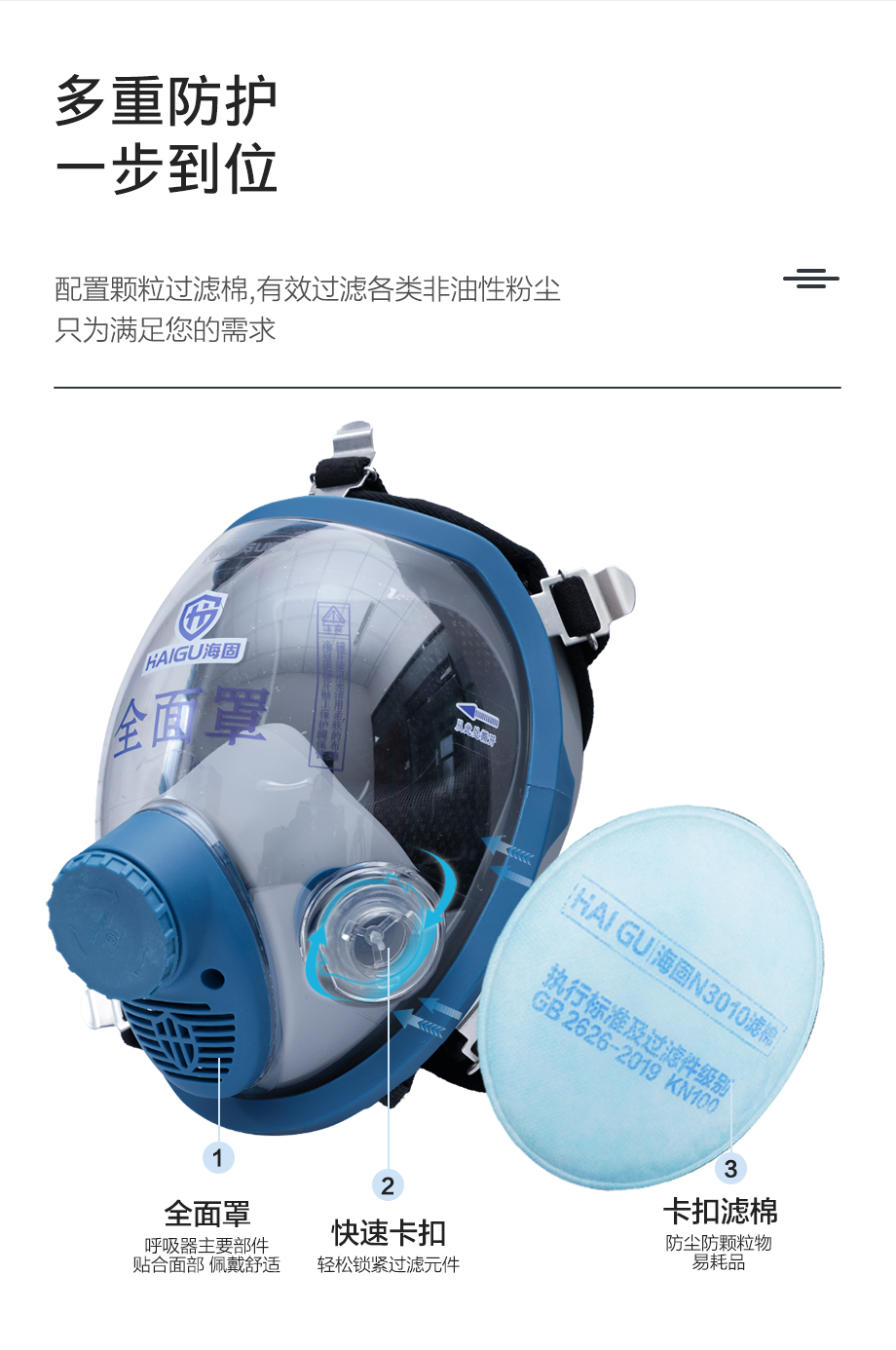 海固800D全面罩+KN100/KN95/KN90非油性顆粒物濾棉 防塵套裝