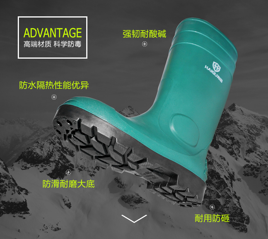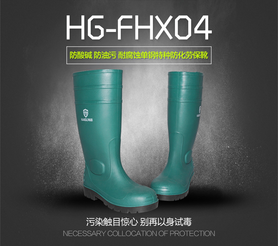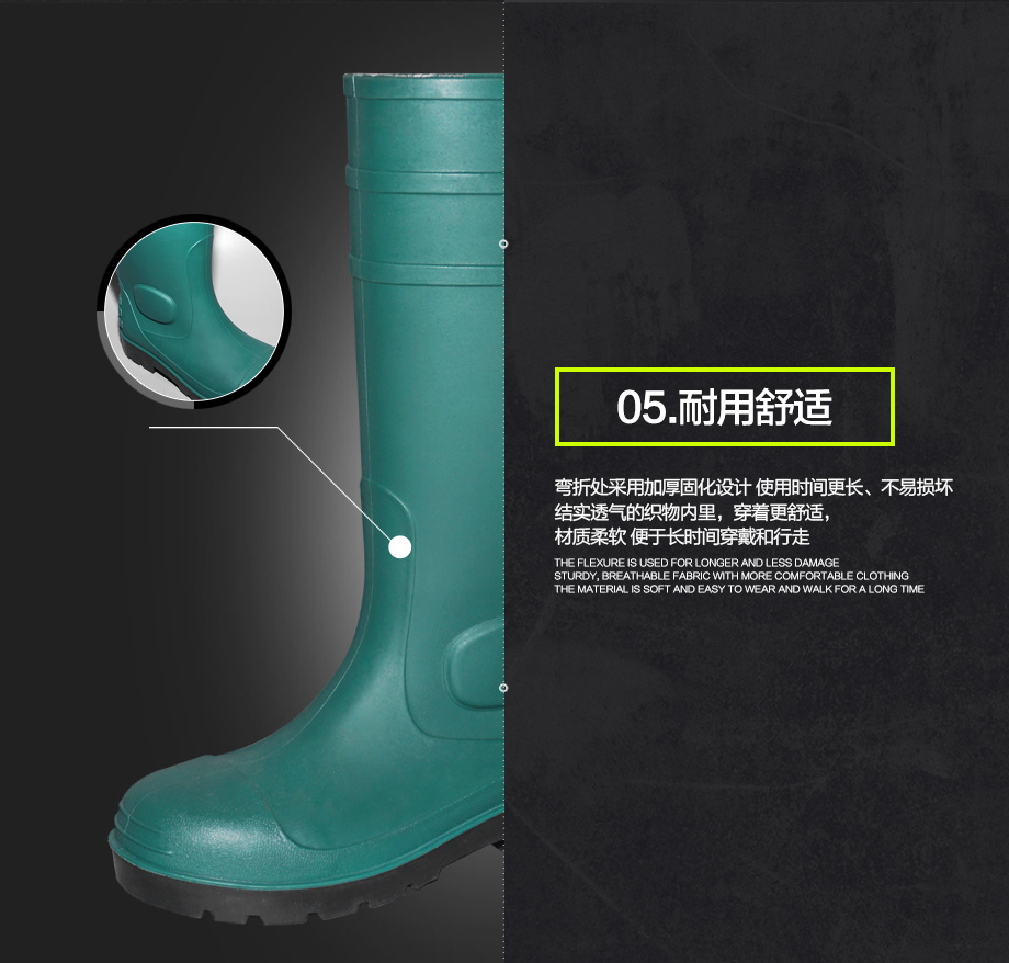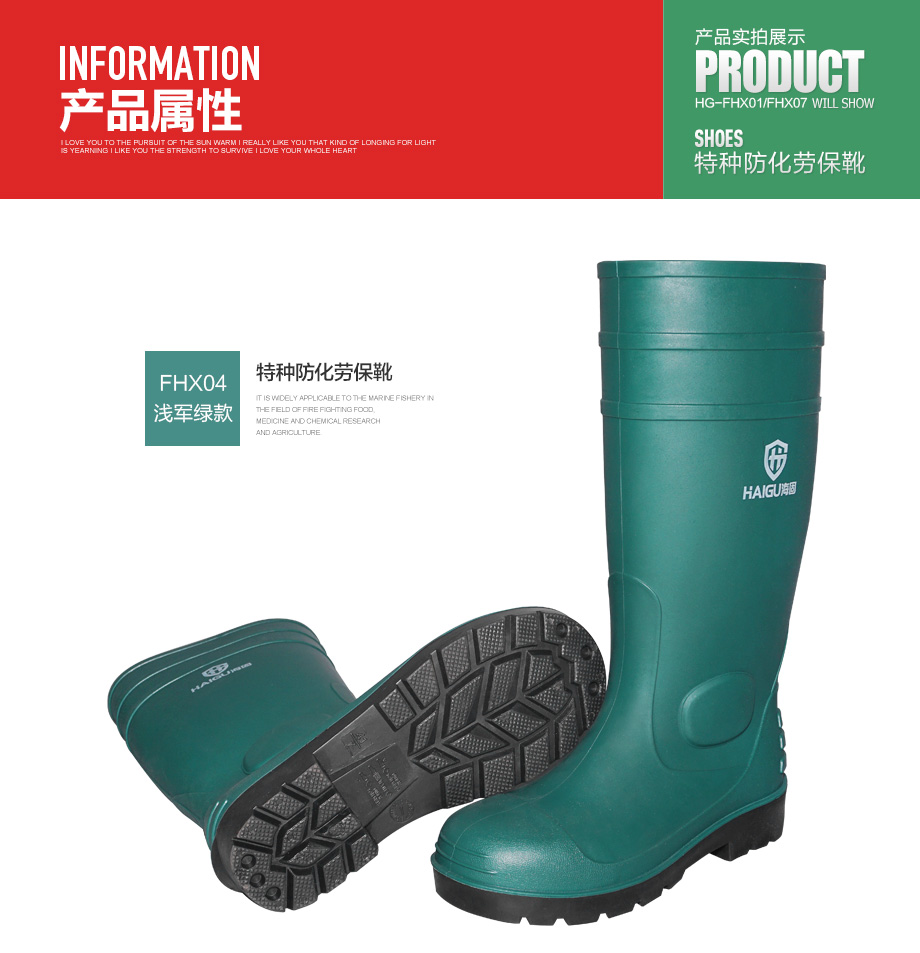 名稱:一級靴子-單鋼綠幫黑底防化靴
