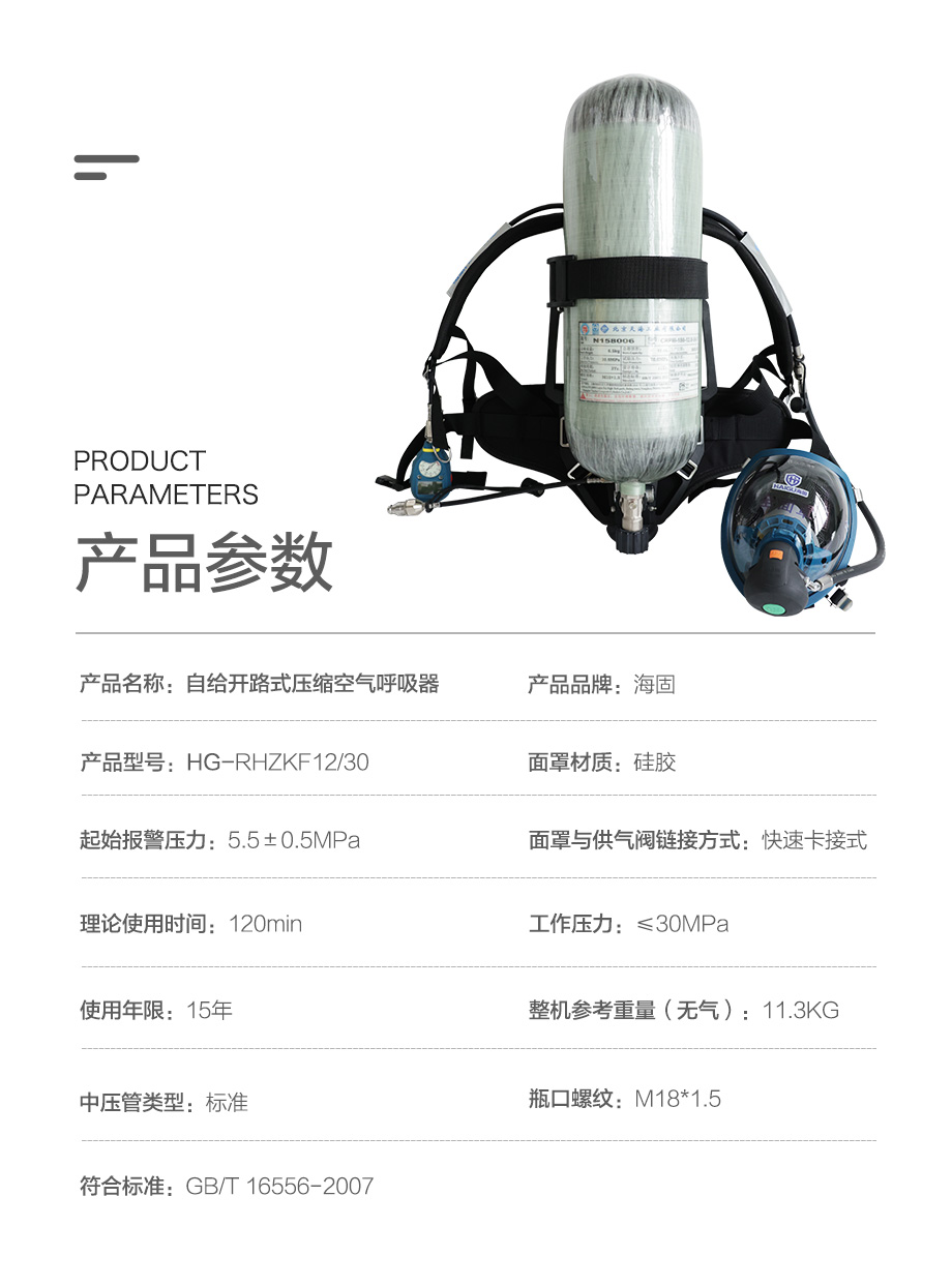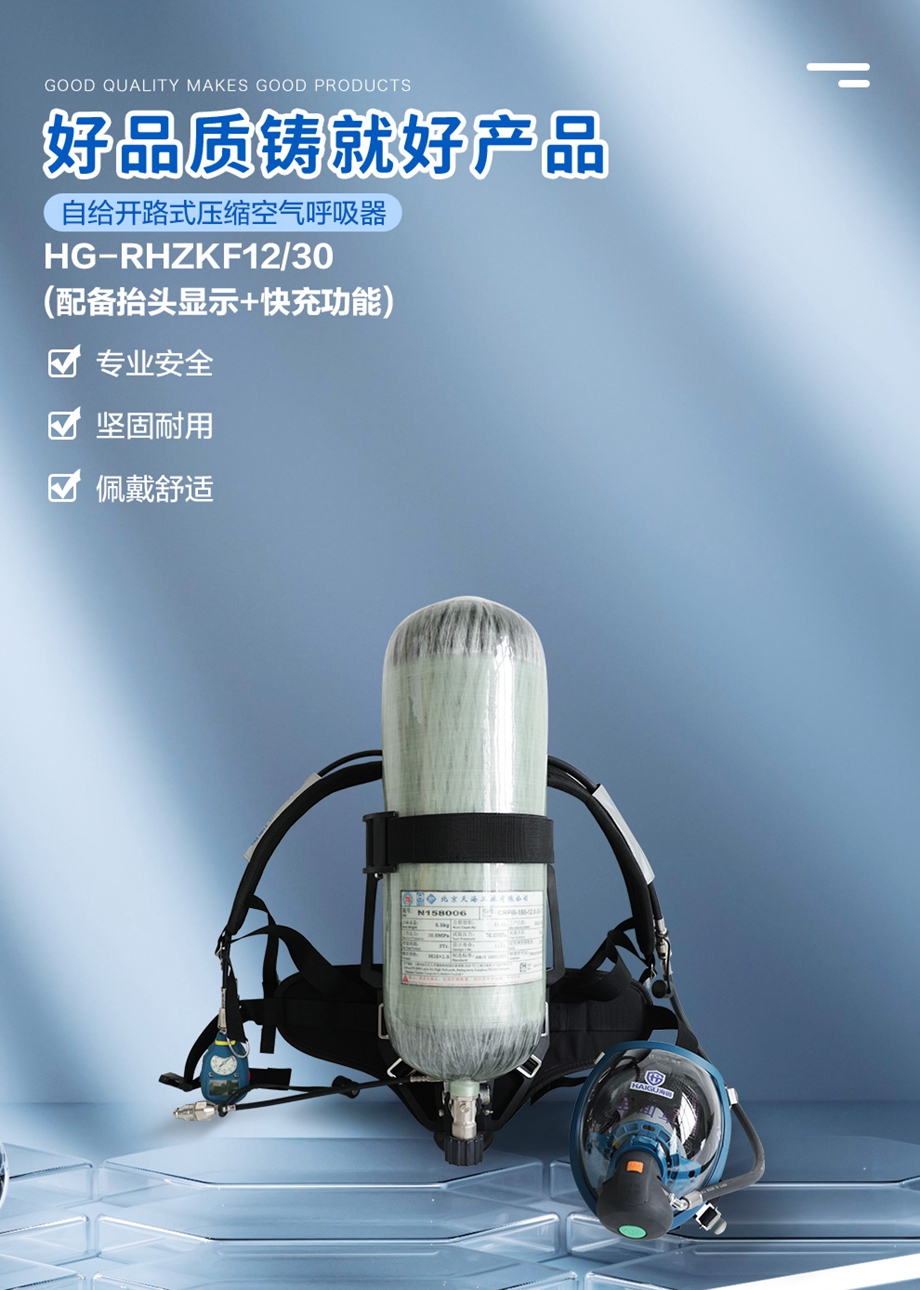 海固RHZKF12/30 正壓式空氣呼吸器 抬頭顯示+快充功能 碳纖維復(fù)合氣瓶