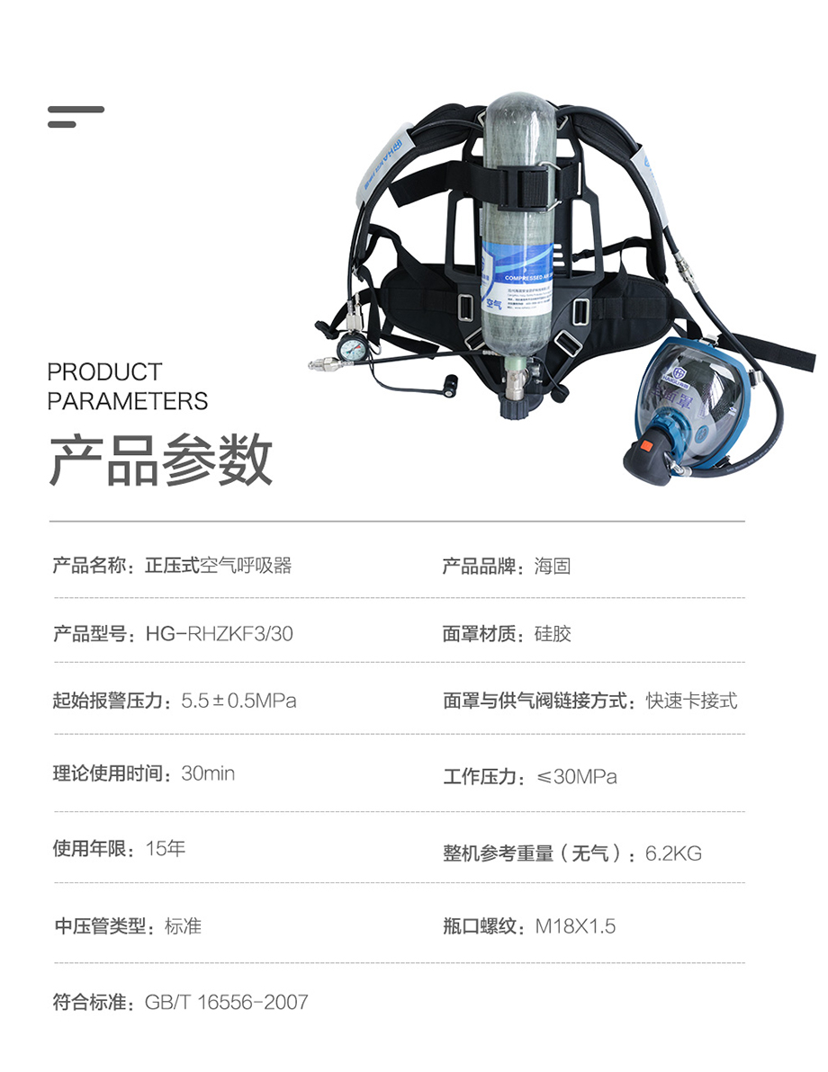 海固RHZKF3/30(快充款) 正壓快充式空氣呼吸器 快速充氣 碳纖維復合氣瓶