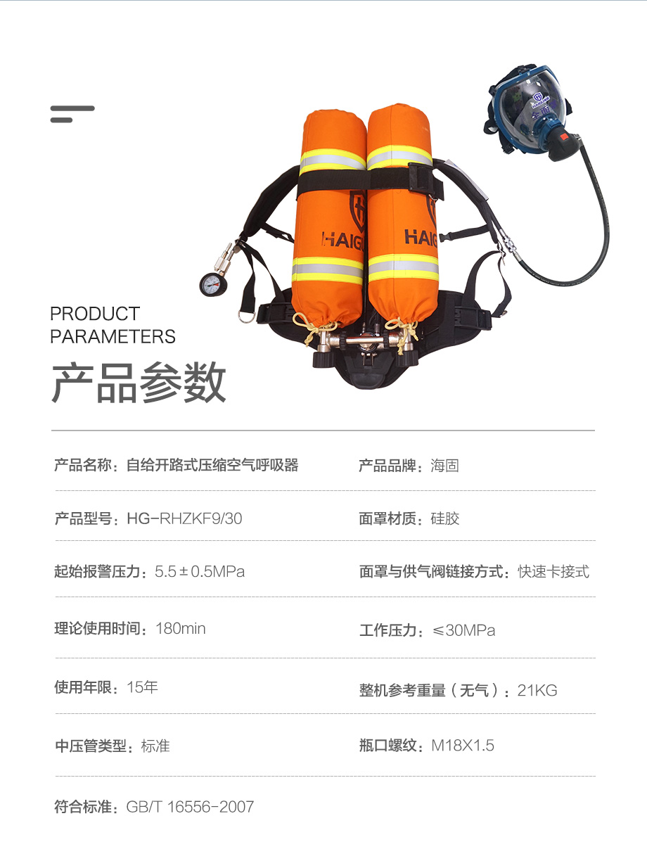 海固RHZKF9/30(雙瓶款)正壓式空氣呼吸器 9L雙瓶