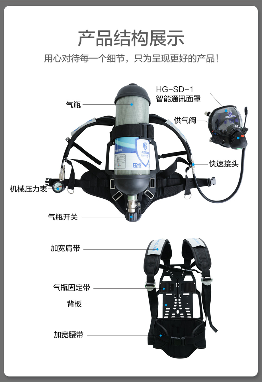 海固RHZKF6.8/30(智能通訊款) 正壓式空氣呼吸器(裝配SD-1智能通訊款面罩)