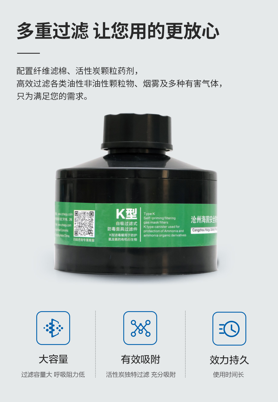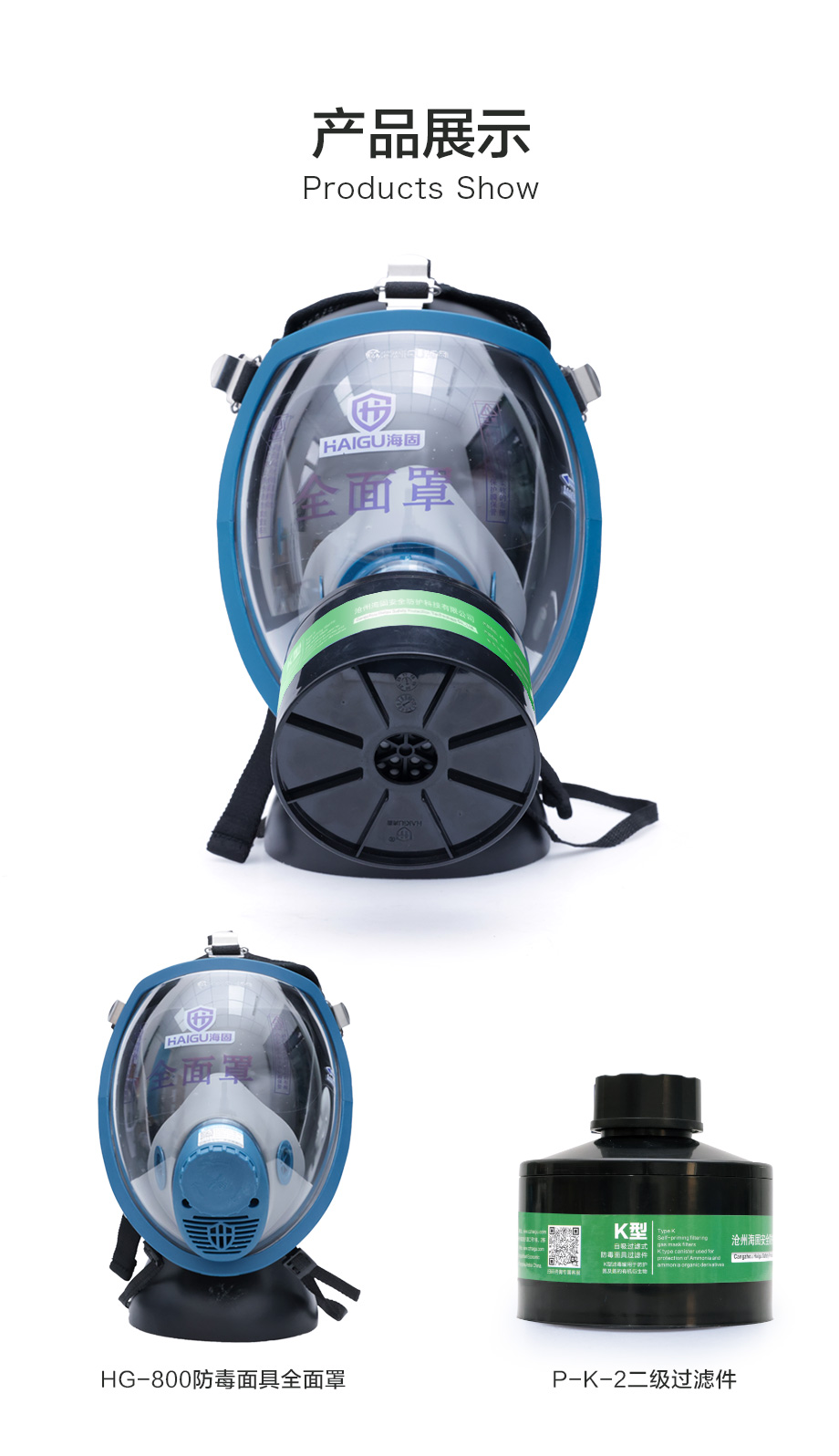 海固800全面罩+P-K-2濾毒罐 氨氣防毒面具套裝
