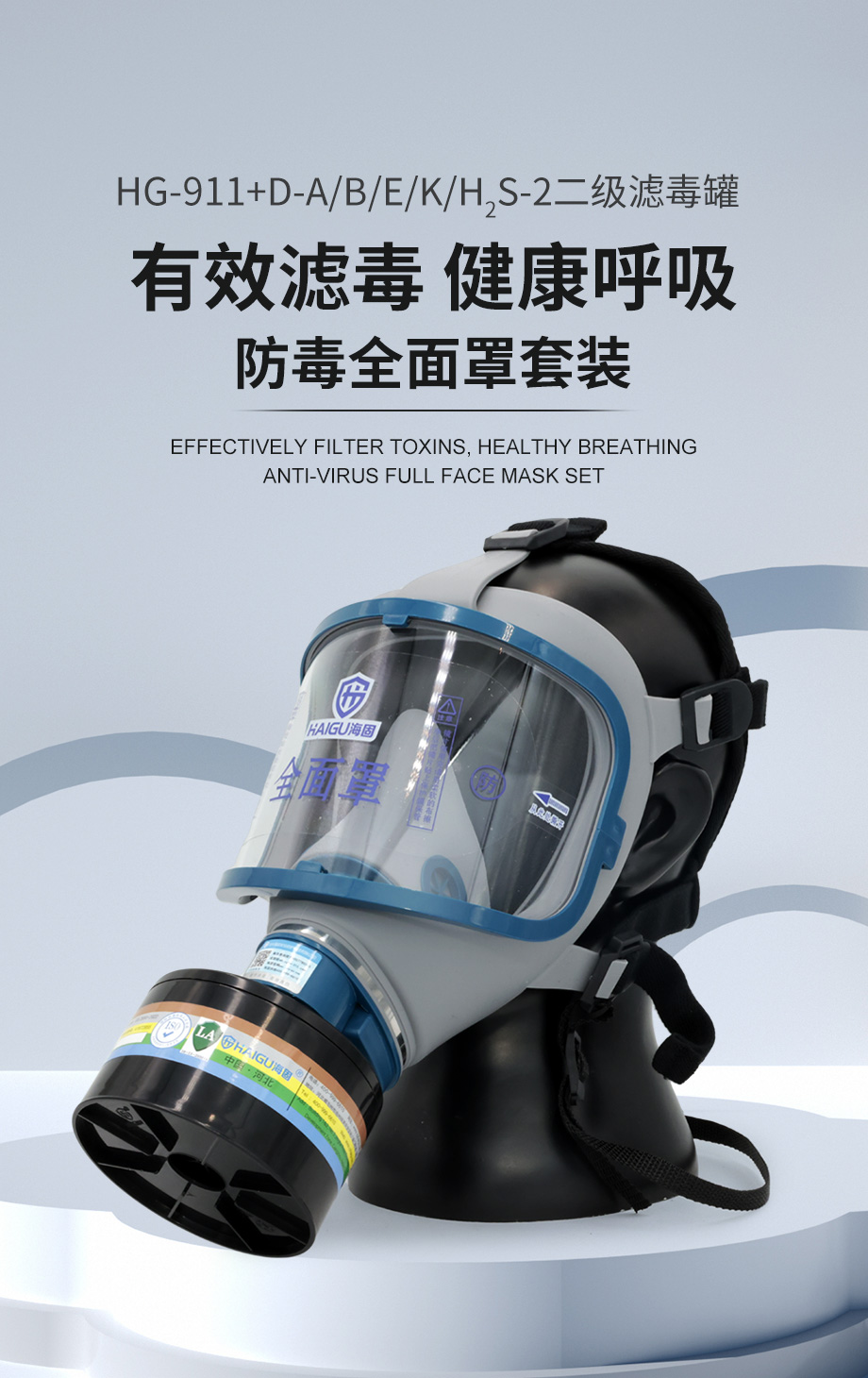 海固911全面罩+D-A/B/E/K/H2S-2濾毒罐 綜合防毒氣