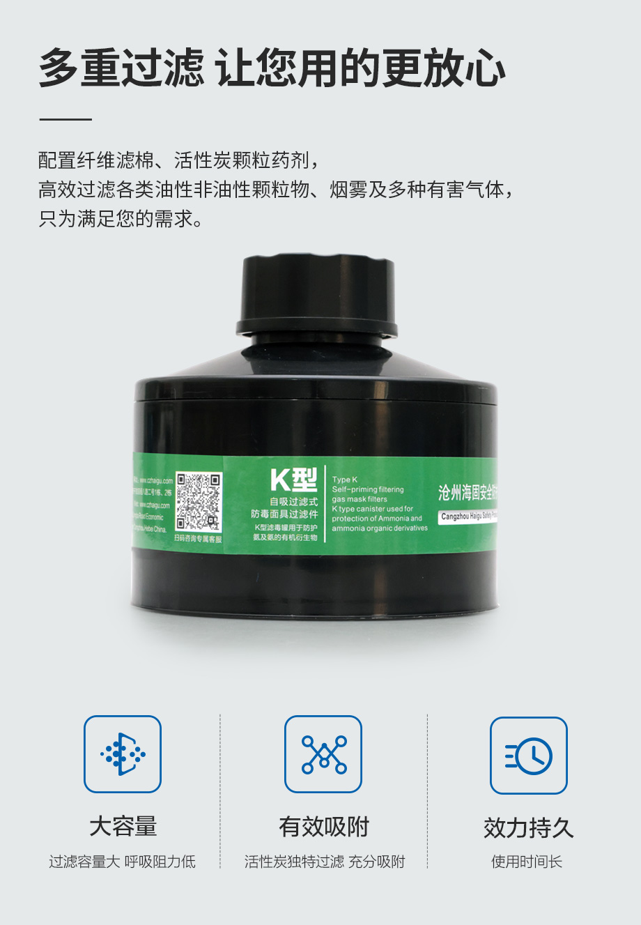 產(chǎn)品規(guī)格:寶藍(lán)灰硅膠/ABS濾毒罐