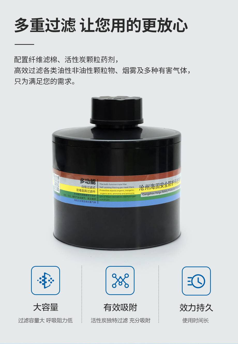 產(chǎn)品規(guī)格:寶藍(lán)灰硅膠/ABS濾毒罐