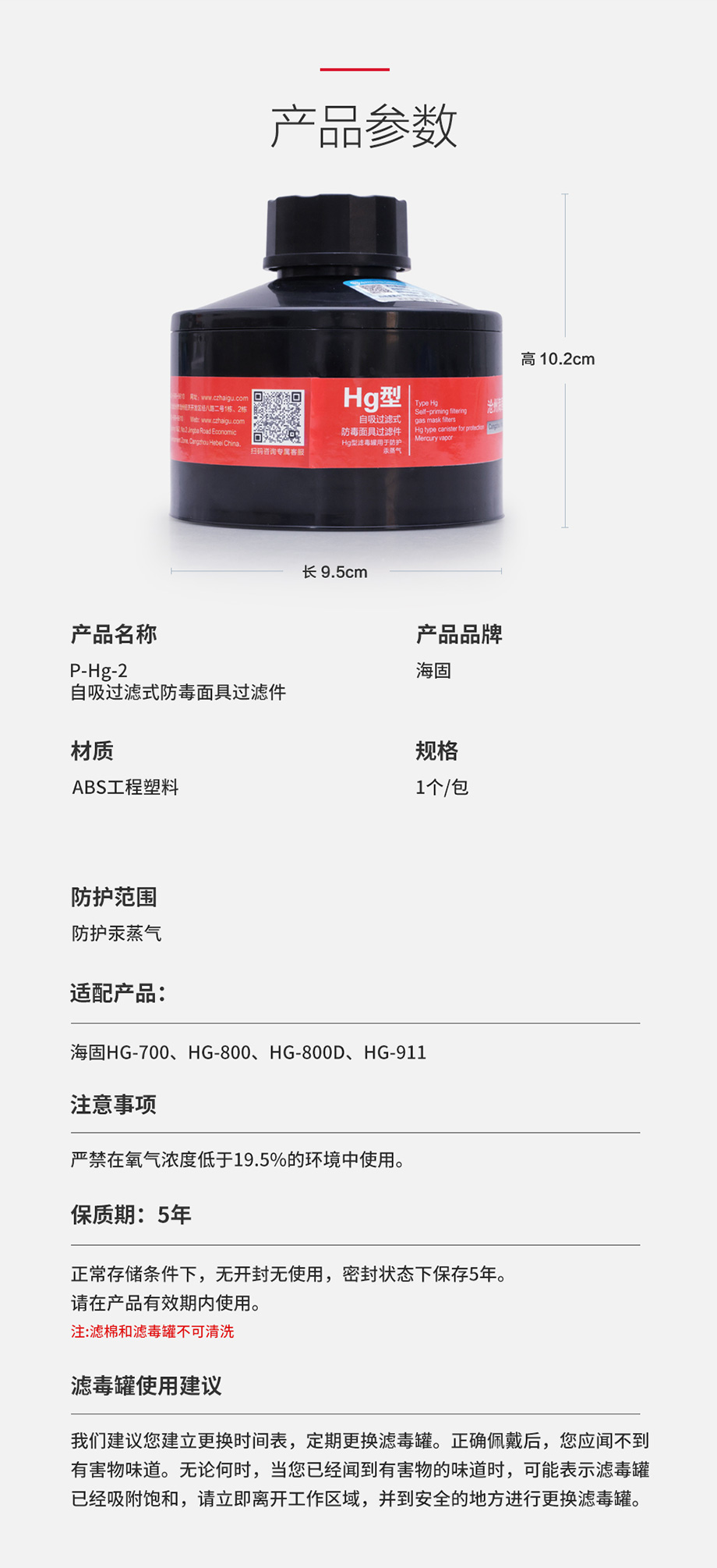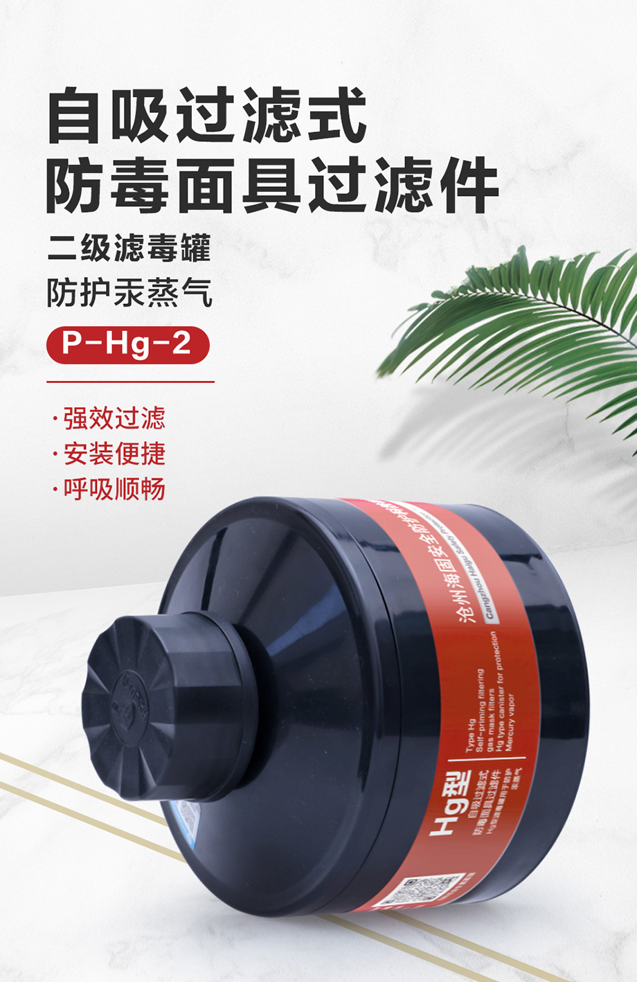 海固P-Hg-2濾毒罐 汞蒸汽、水銀防護(hù) 6號(hào)濾毒罐