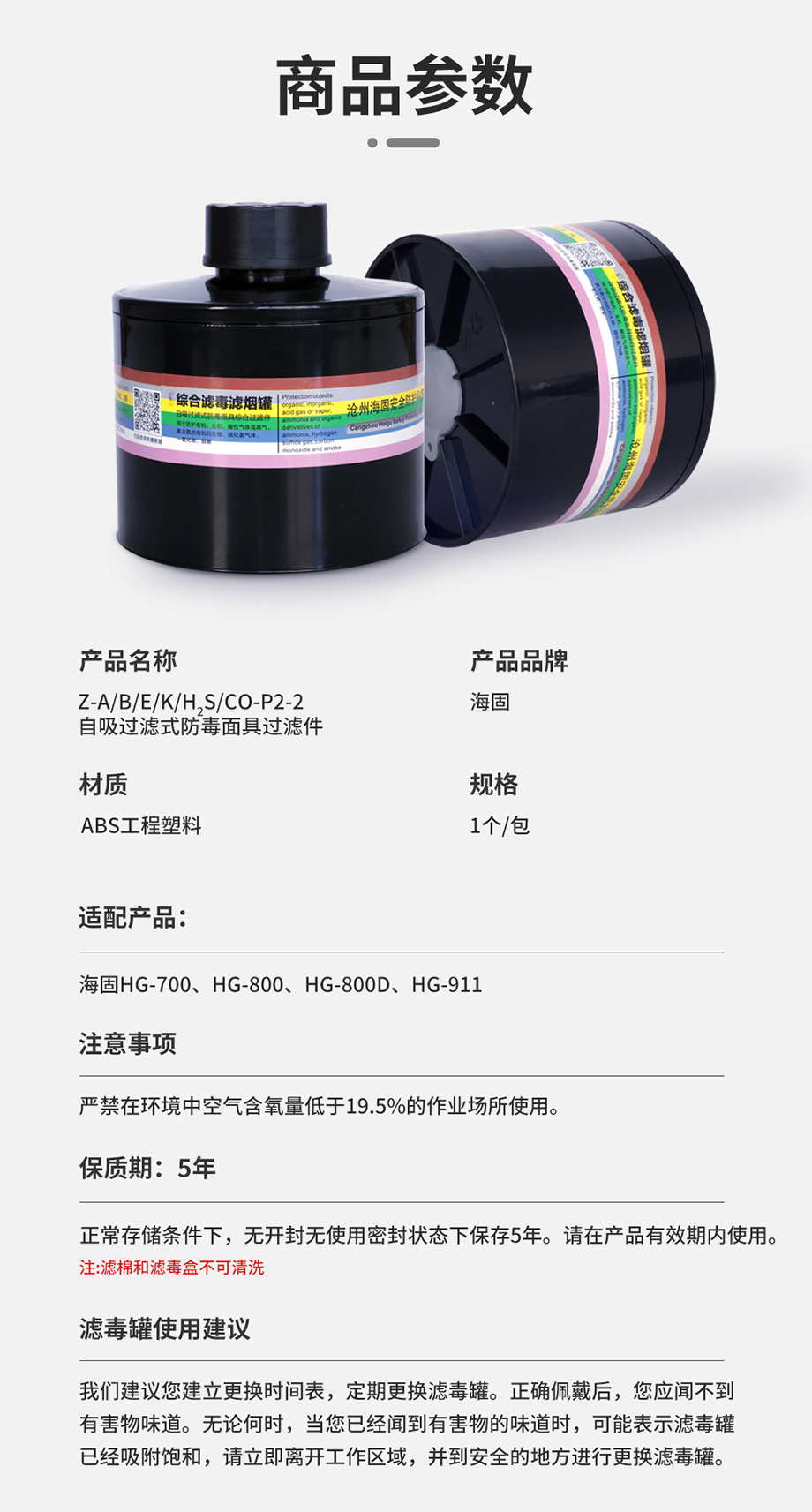 海固Z-A/B/E/K/H2S/CO-P2-2/P3-2綜合濾毒罐