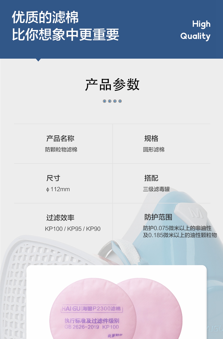 海固2系列3級KP圓形濾棉 KP100/KP95/KP90油性及非油性顆粒物濾棉