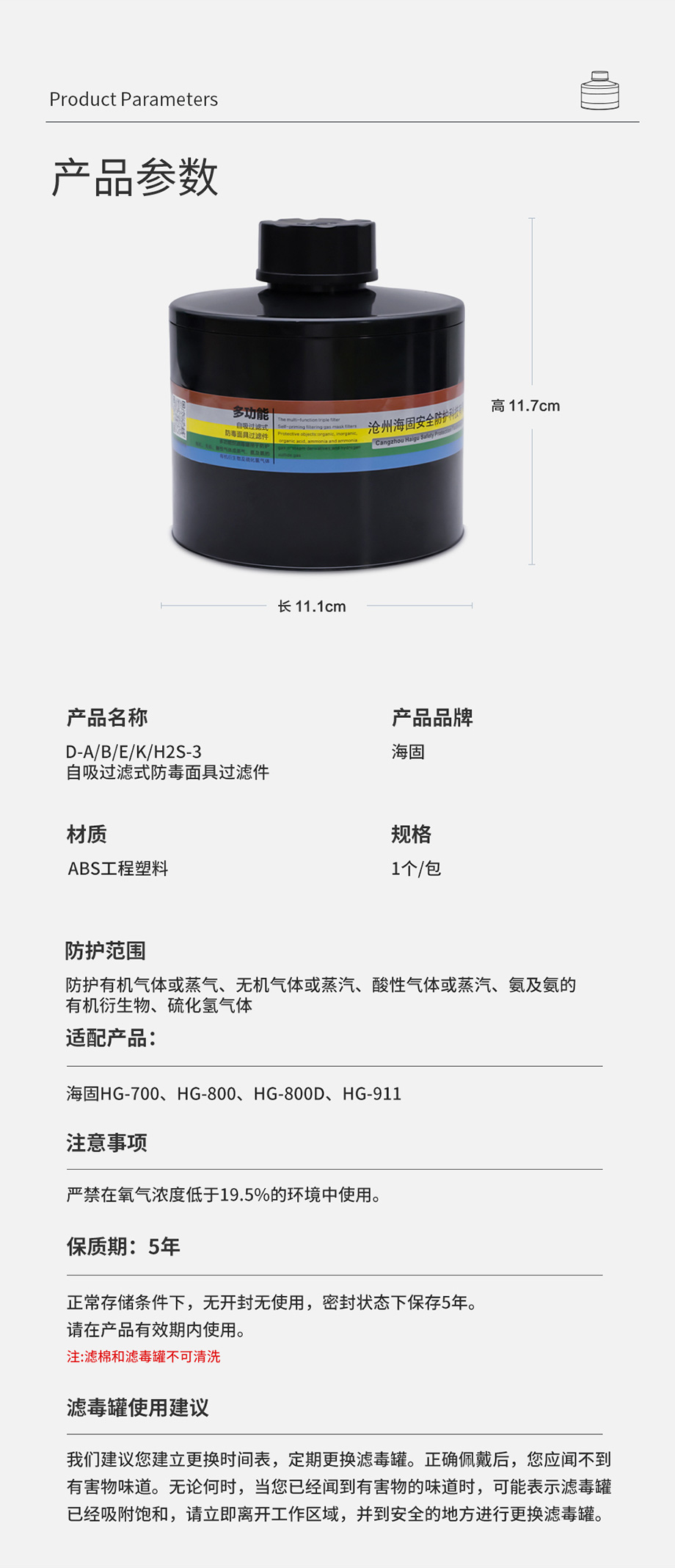海固D-A/B/E/K/H2S-3濾毒罐 綜合多氣體防護(hù)三級(jí)濾毒罐