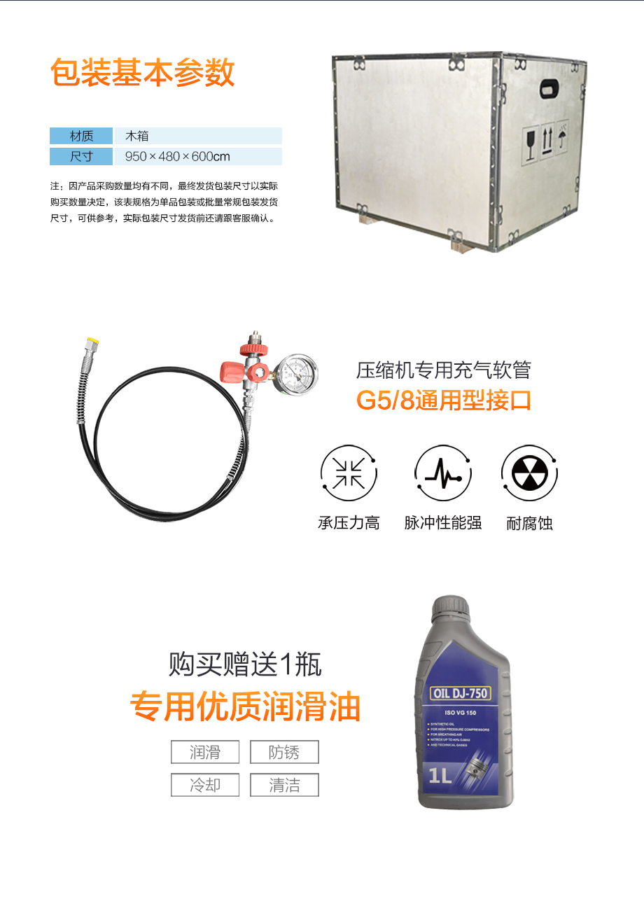 產(chǎn)品規(guī)格:220V 50HZ 2.2KW 單相電機(jī)100L/min三級缸