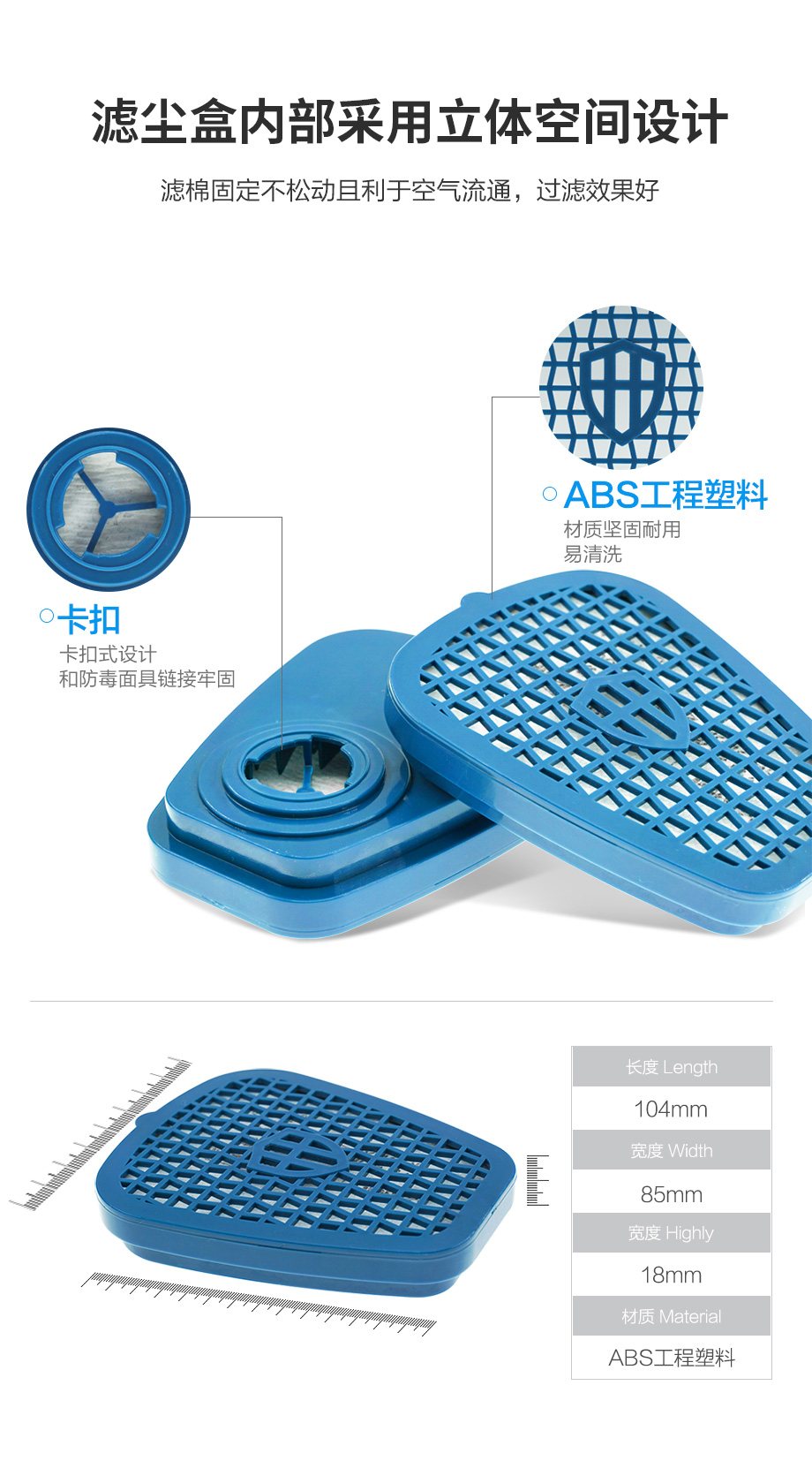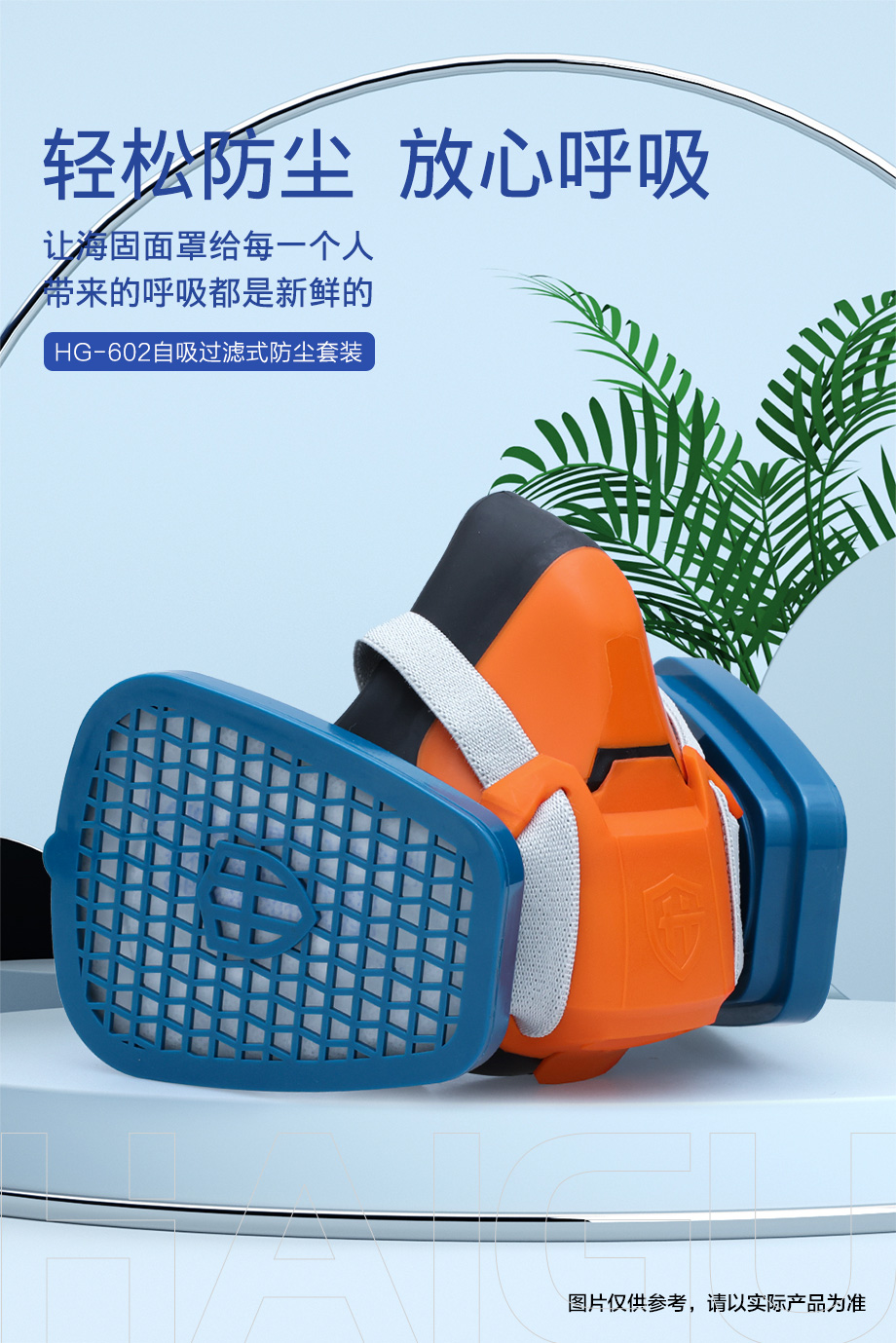 防塵防顆粒物套裝 海固602半面罩+三卡口濾塵盒+濾棉