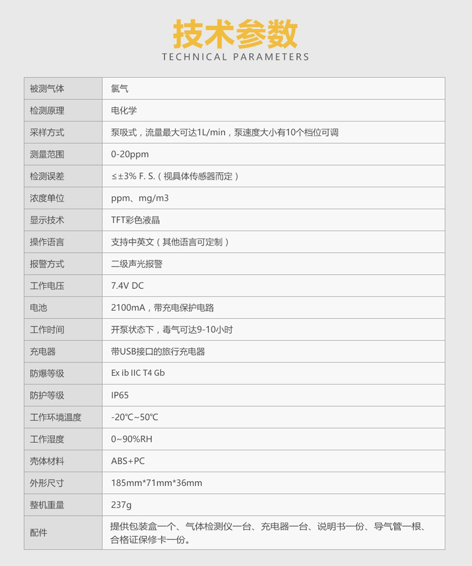 海固HG-BX-CL2氯氣彩屏泵吸單一式氣體檢測儀