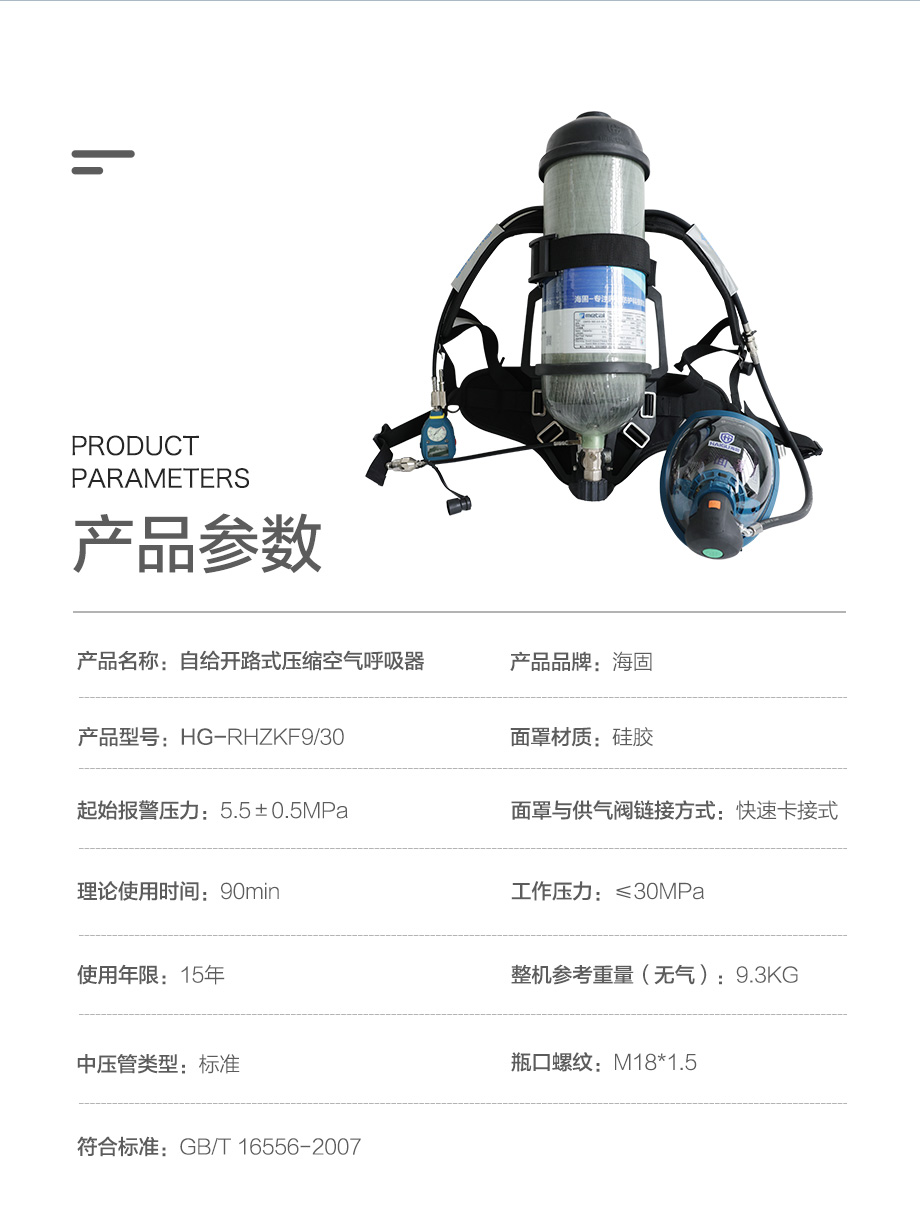 海固RHZKF9/30 正壓式空氣呼吸器 抬頭顯示+快充功能 碳纖維復(fù)合氣瓶