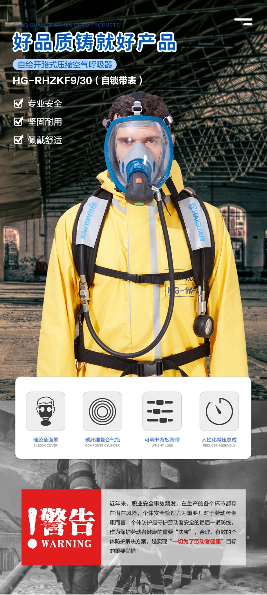 海固RHZKF9/30 自鎖帶表正壓式空氣呼吸器 氣瓶帶自鎖瓶閥